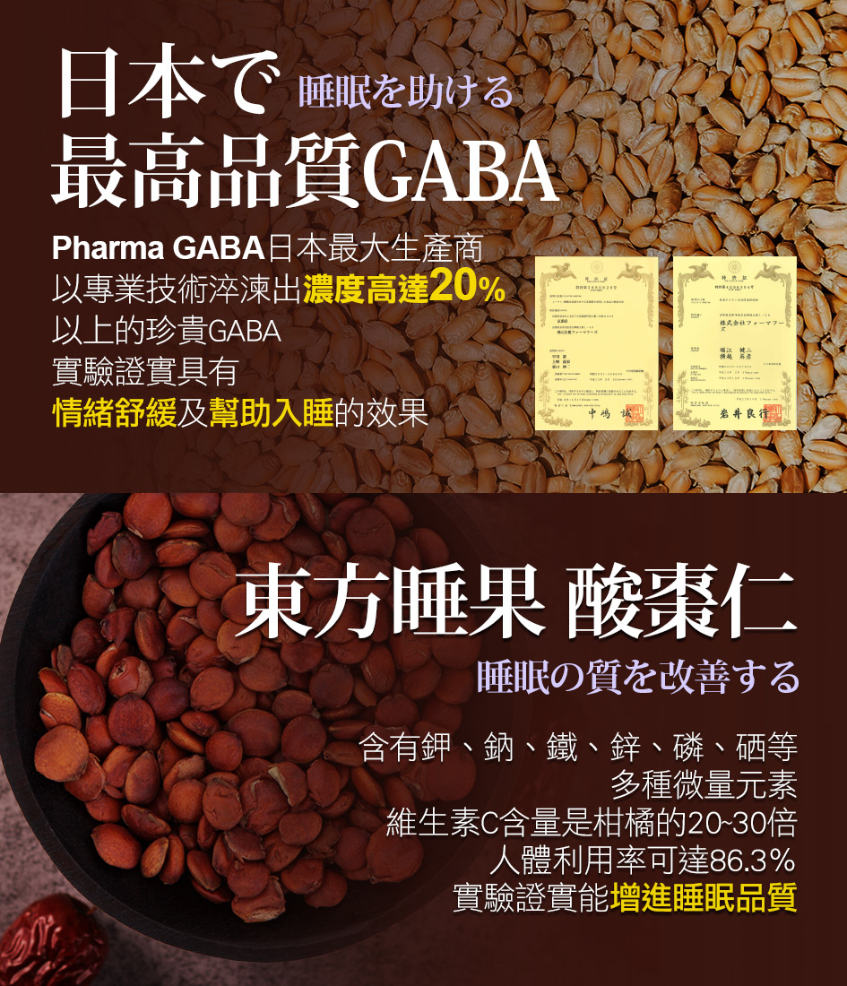 ●專利GABA × 酸棗仁,身心舒緩、舒壓助眠