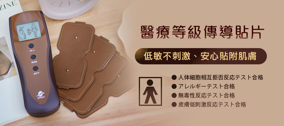A:低週波是一種頻率約在1Hz~1000Hz之間的微電流刺激,透過電極貼片傳遞至皮膚表層,進一步刺激肌肉收縮與放鬆,常用於協助肌肉放鬆、促進局部循環與模擬按摩感受。不同頻率與節奏的變化,可產生揉捏、敲擊等不同的刺激效果。
