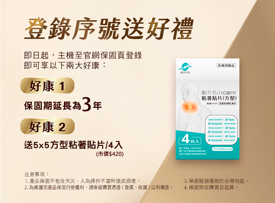 3.請勿用於急性病患、嚴重感染性病患、孕婦、嚴重皮膚病患、皮膚異常者、惡性腫瘤、裝有心律調節器、腦軟化症、急性細菌感染、初期外傷72小時內、身體特殊異常者、感覺神經異常者,血壓異常(180mm Hg以上)或發燒(38℃/100℉以上)者;請避免在肌膚敏感脆弱的時期、濕疹、傷口處使用。