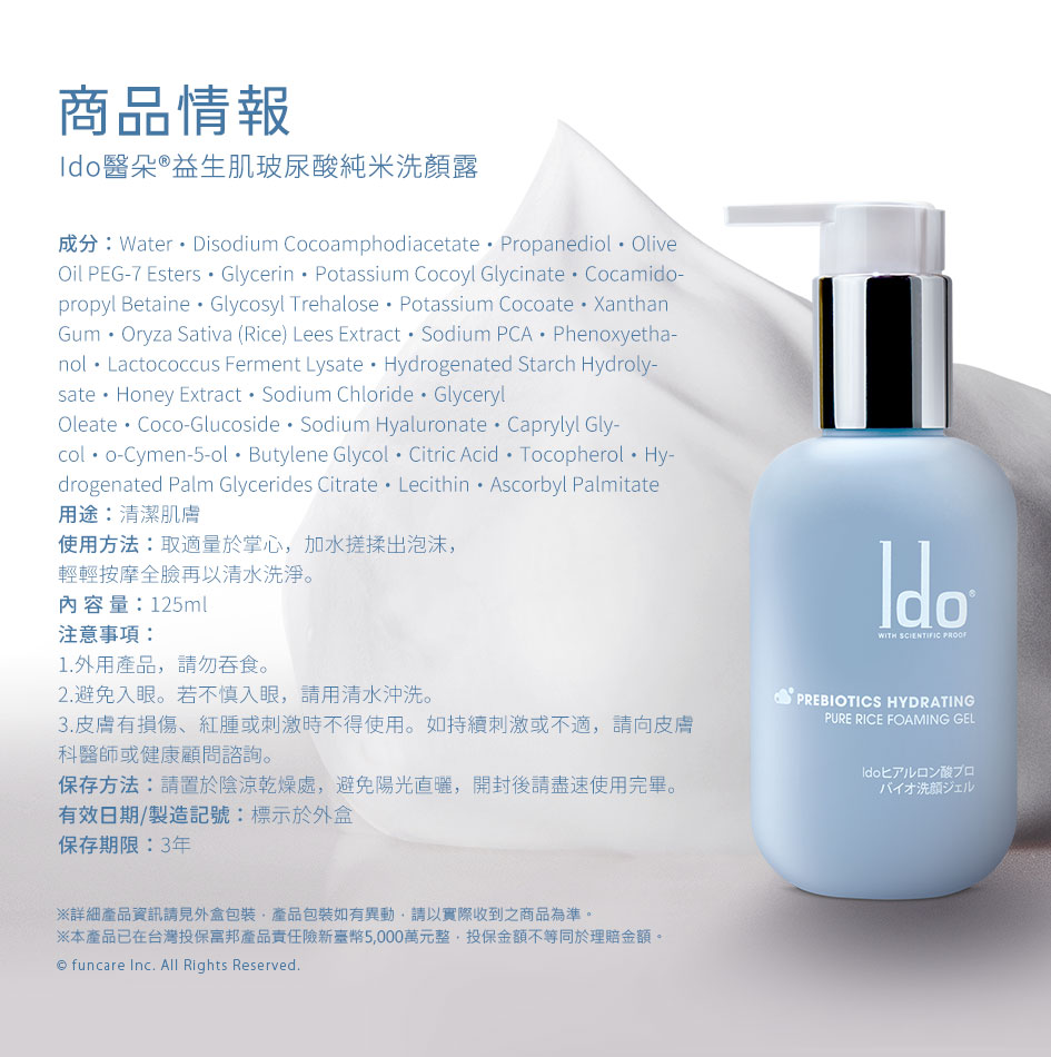 船井®Ido®益生肌玻尿酸純米洗顏露125ml