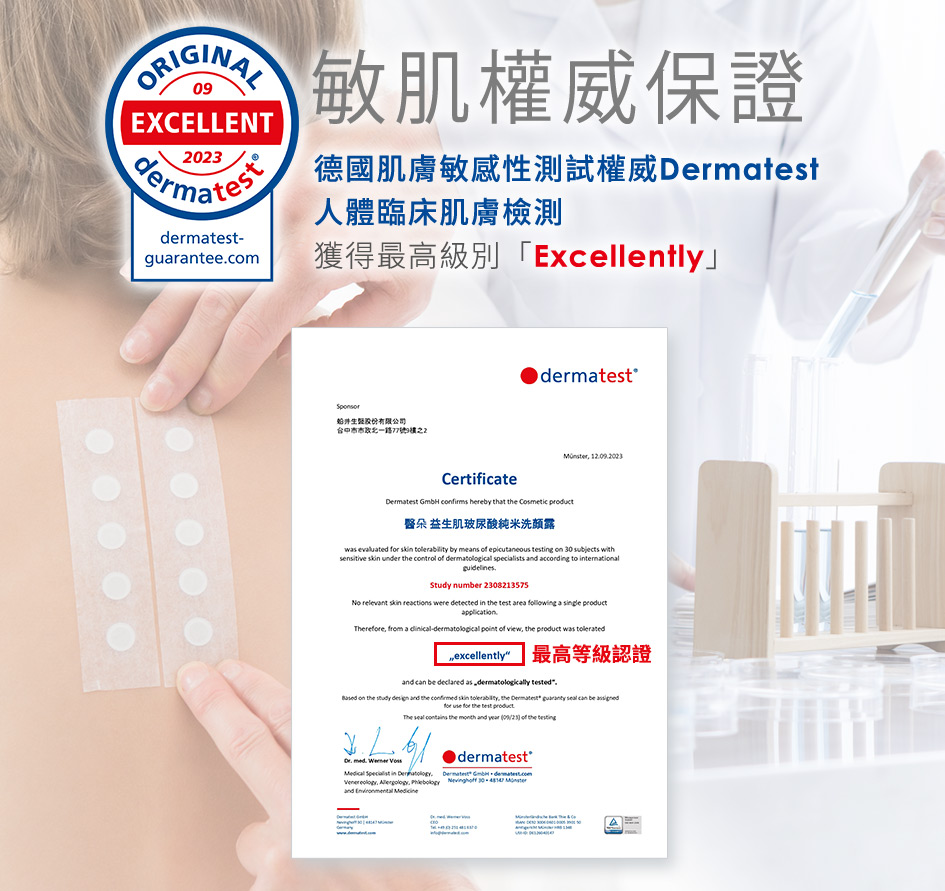 ●德國敏弱肌權威Dermatest 最高級別安心認證