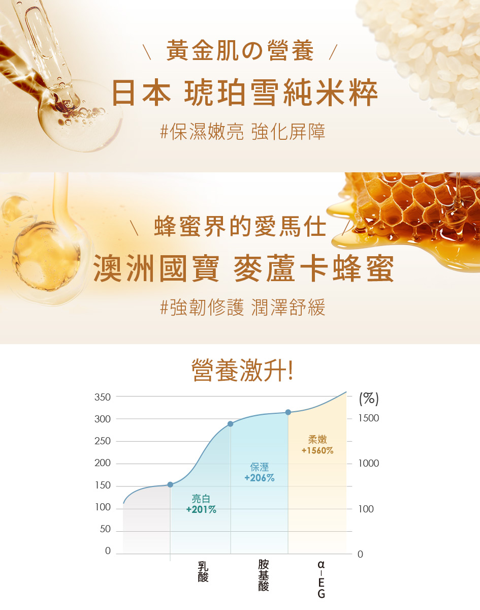 • 日本百年琥珀雪純米萃 ▶ 抗氧嫩亮、強化屏障