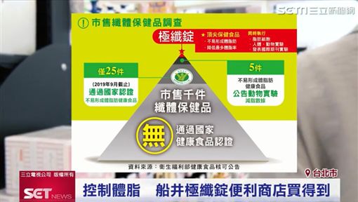 ▲市售上千件的纖體產品中,只有25件通過國家認證,5件有公告實驗數據,只有船井極纖錠同時有執行細胞、動物跟人體的實驗,安全性高。(圖/截自影片)