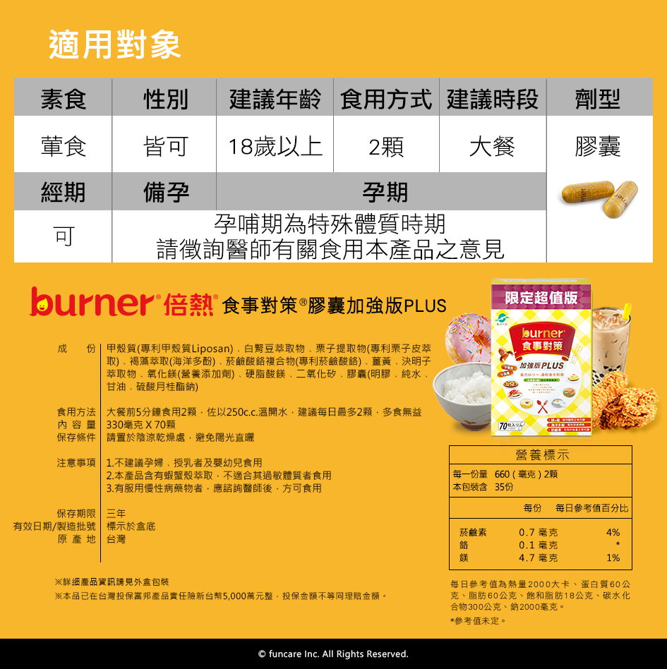 船井®burner®倍熱®食事對策®膠囊加強版PLUS 70入