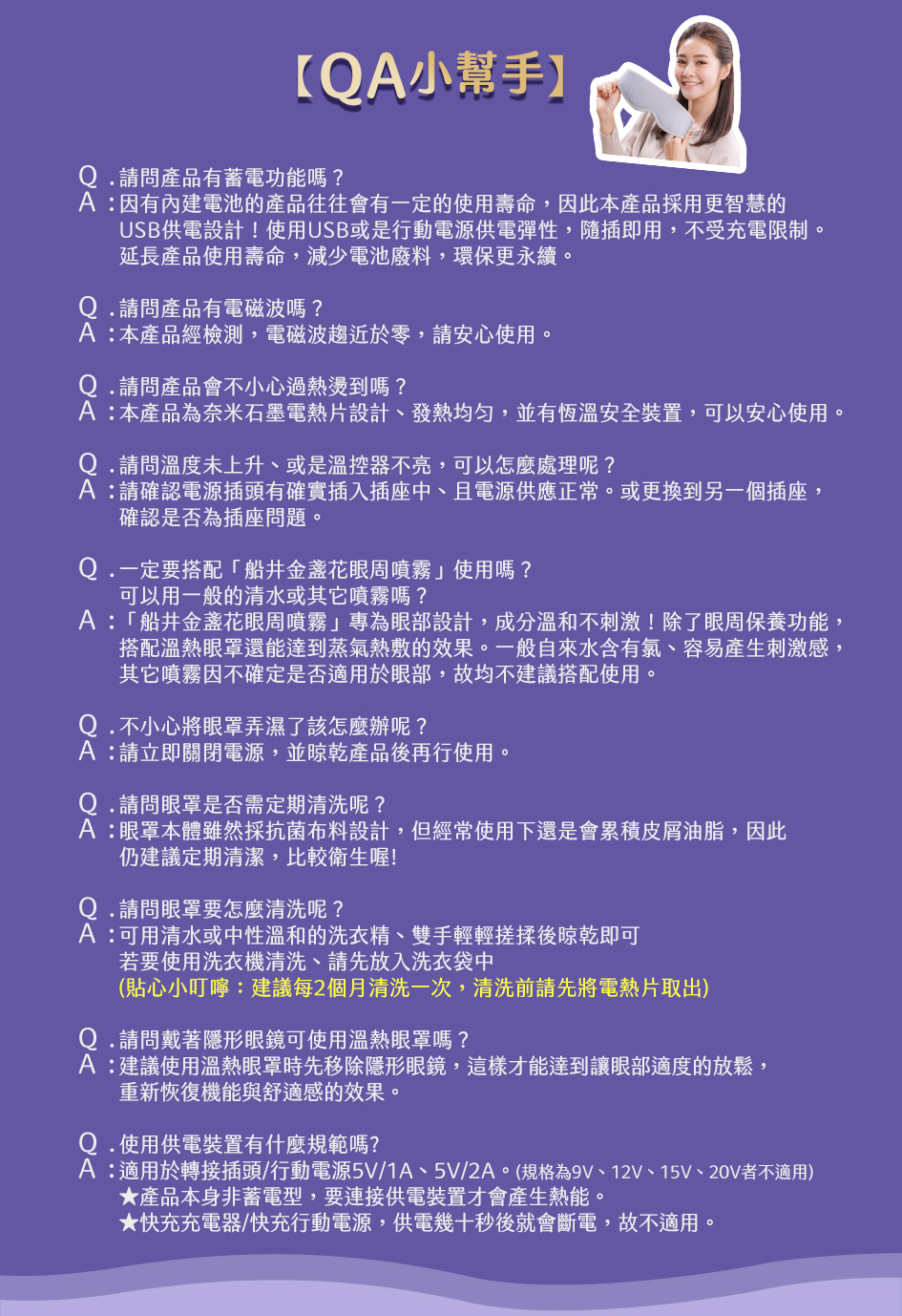 ★搭配「船井金盞花眼周噴霧」使用,可提供充足厚蒸氣,舒緩疲勞。