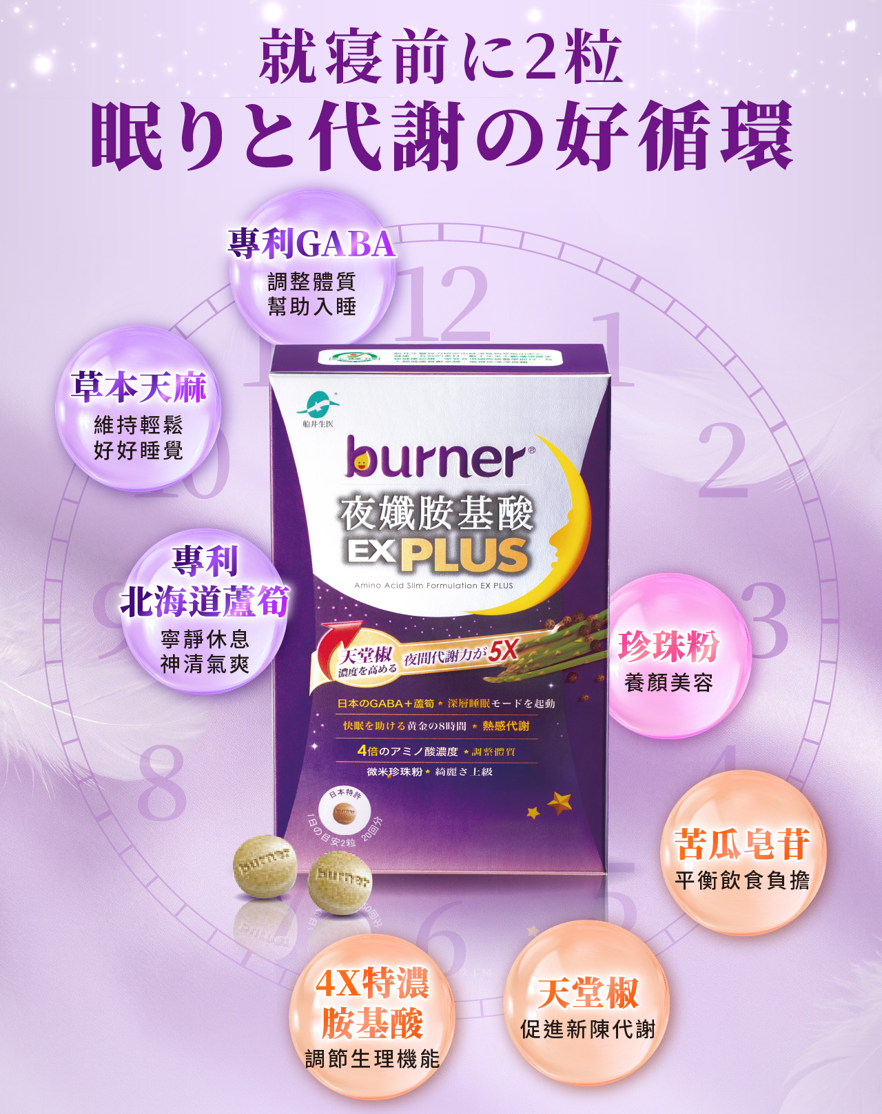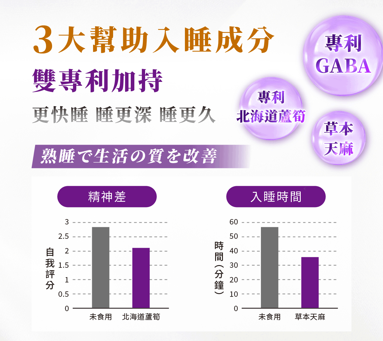 • 幫助入睡:「GABA、北海道蘆筍、草本天麻」3大好眠成分,掌握黃金8小時睡眠