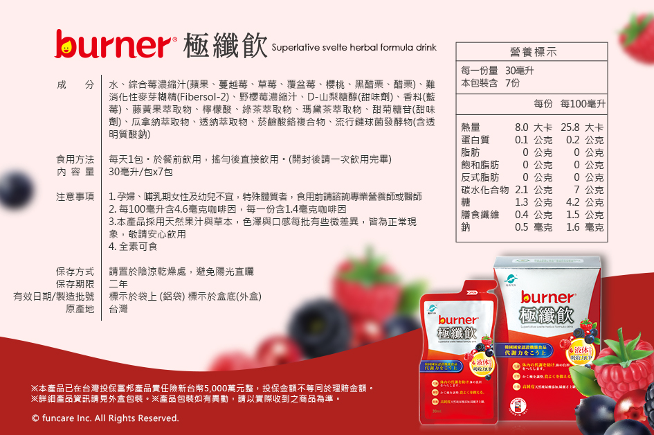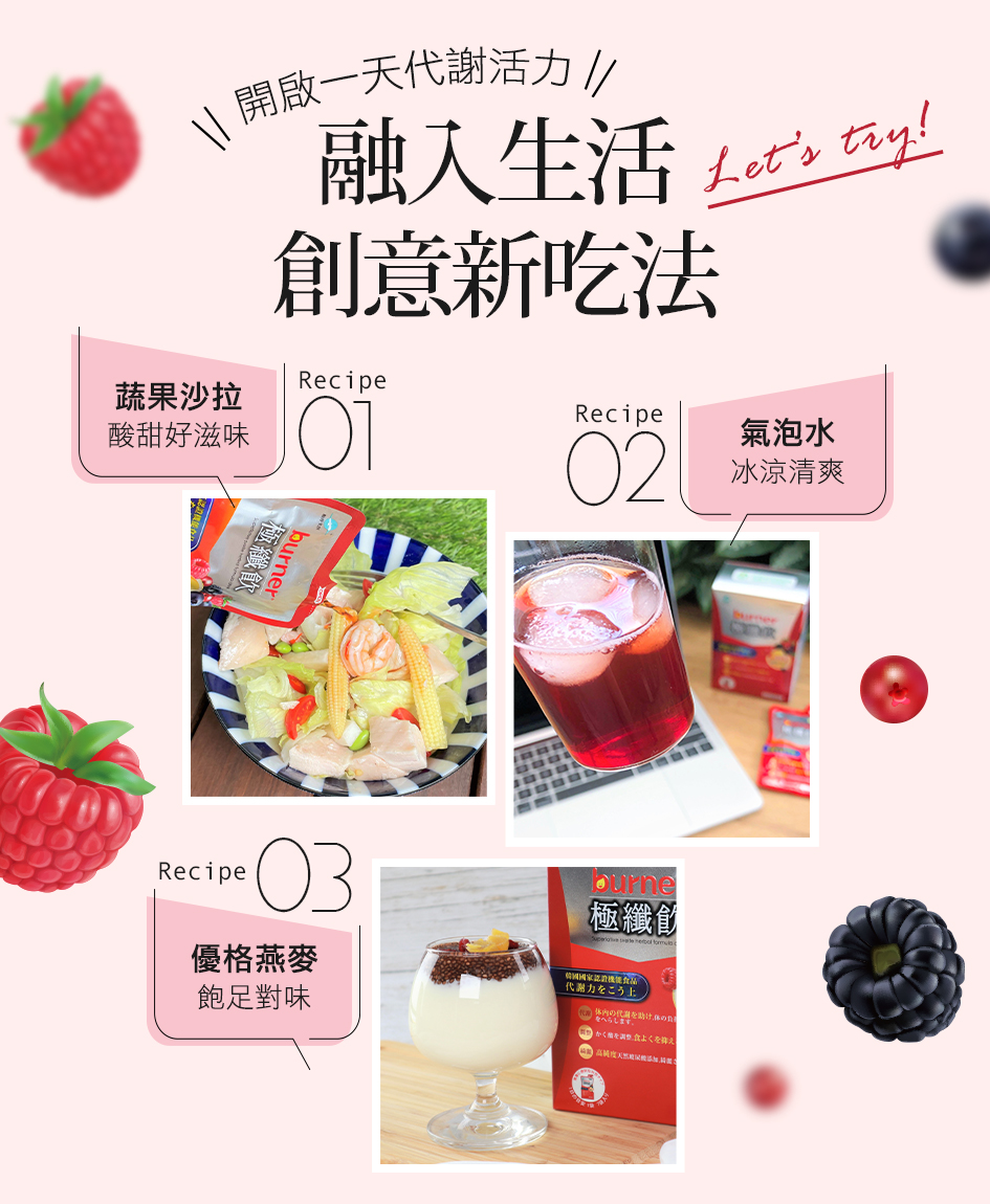 ●液態小分子6X速效好吸收 ●全新升級!更輕巧!更方便! ●4倍速攻代謝,延長運動後燃效應 ●韓國食品藥物管理KFDA核准保健品 ●獨家E.F.T.三重黃金代謝配方,日本共同研發監製 ●Fibersol®-2補充一日所需膳食纖維 ●日本百年大廠玻尿酸打造400%潤澤肌膚 ●莓好肌礎,綺麗好氣色 ●綜合莓果好滋味,8大卡超低熱量無負擔 ●全素可食