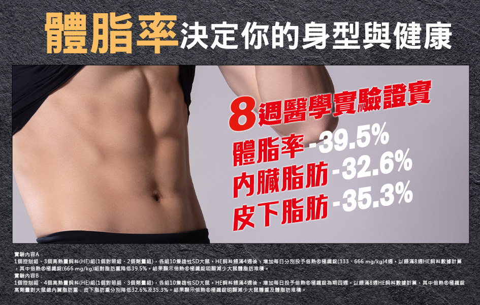 ●經實驗結果降低最多體脂率、內臟脂肪、皮下脂肪