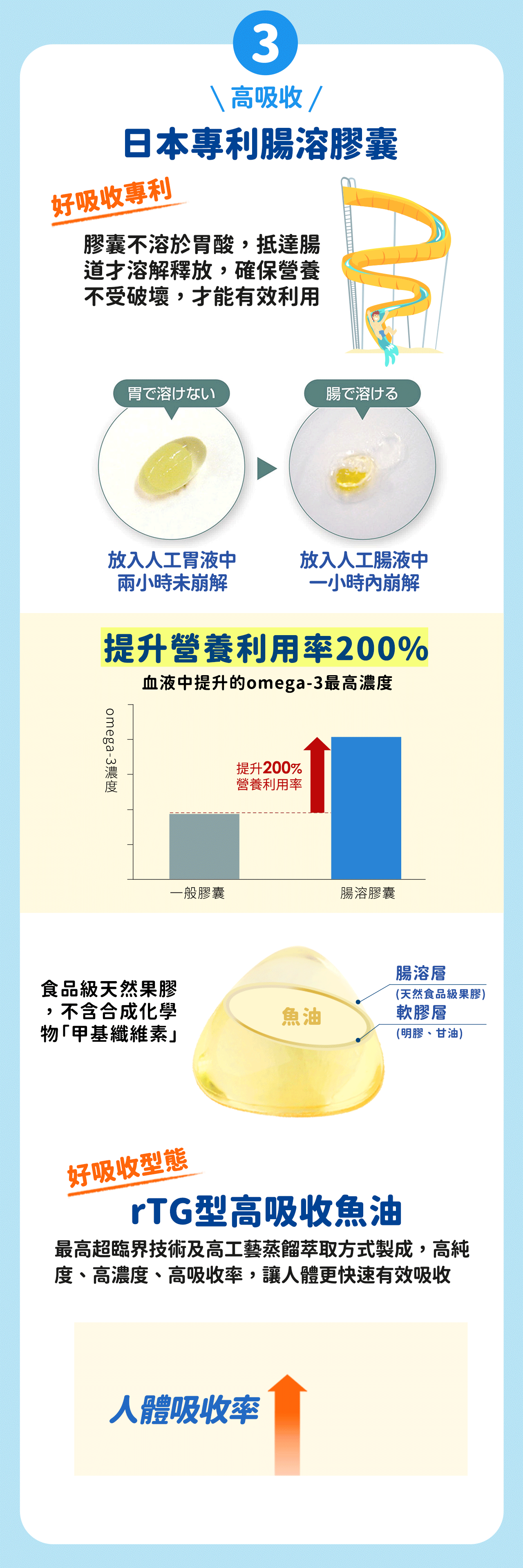 •日本原裝進口、藥廠等級製程,專利腸溶軟膠囊,提高營養利用率200%!