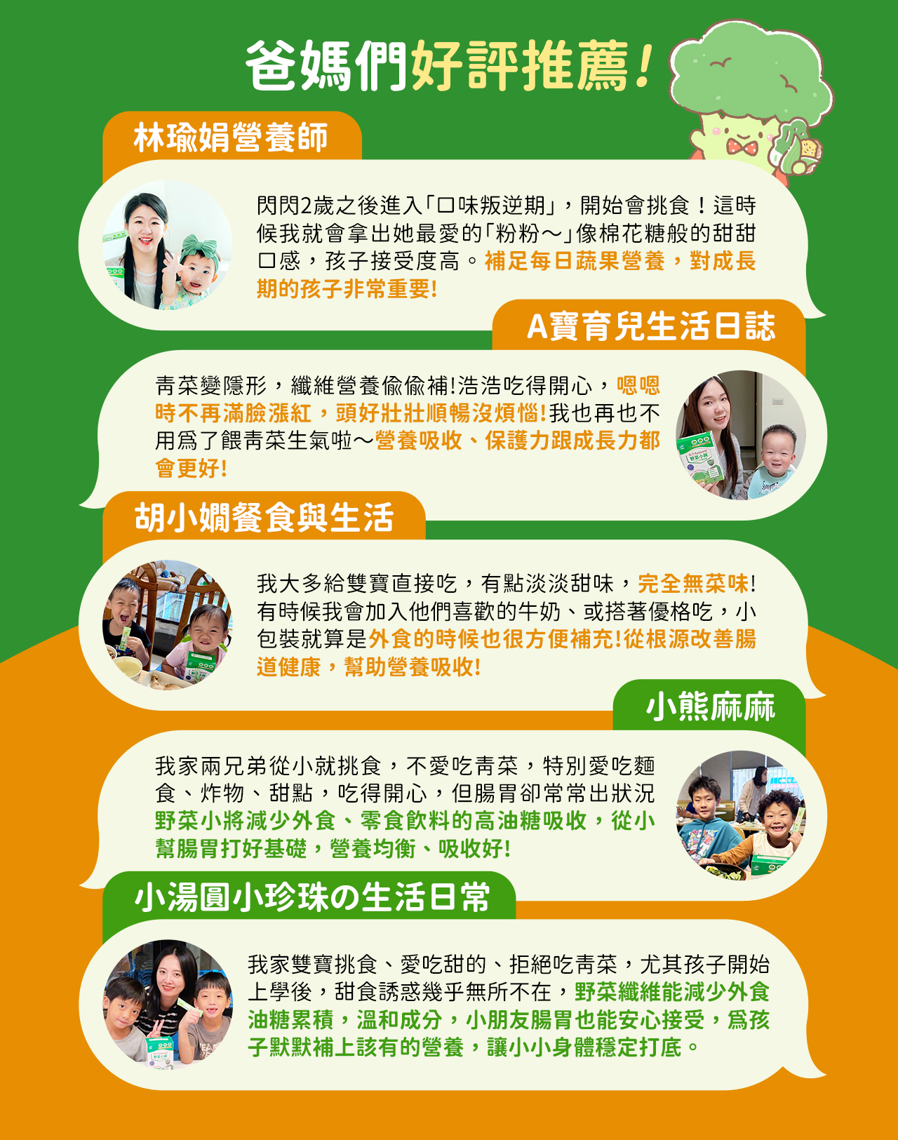 • 專為營養吸收力不足、愛吃油炸、甜食孩子打造