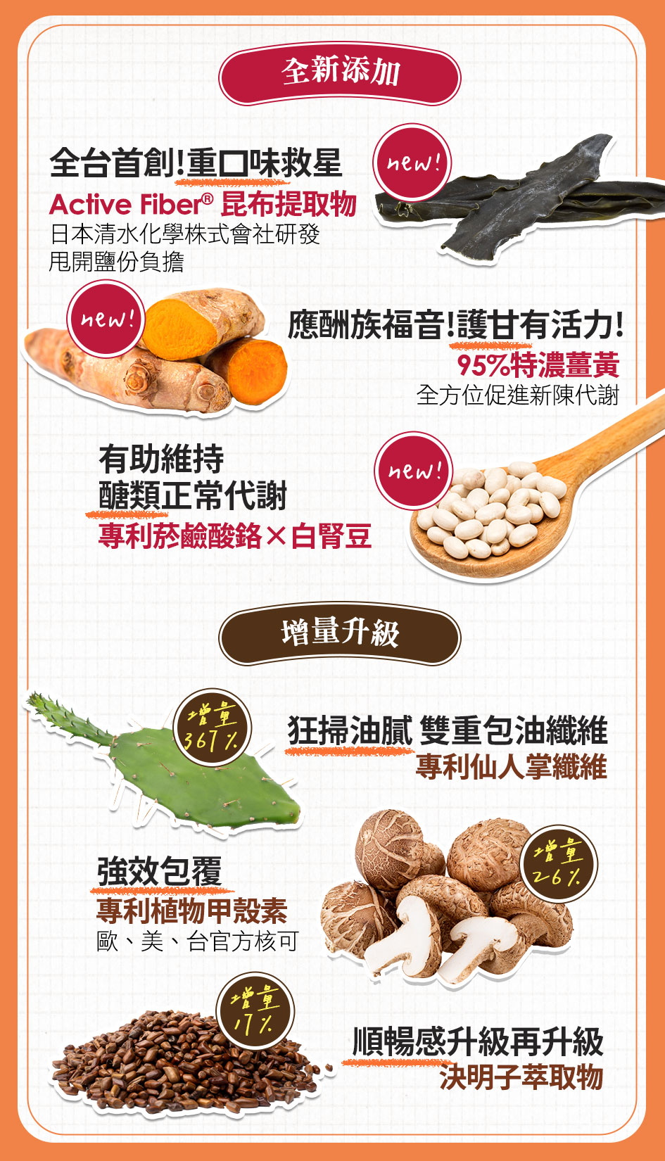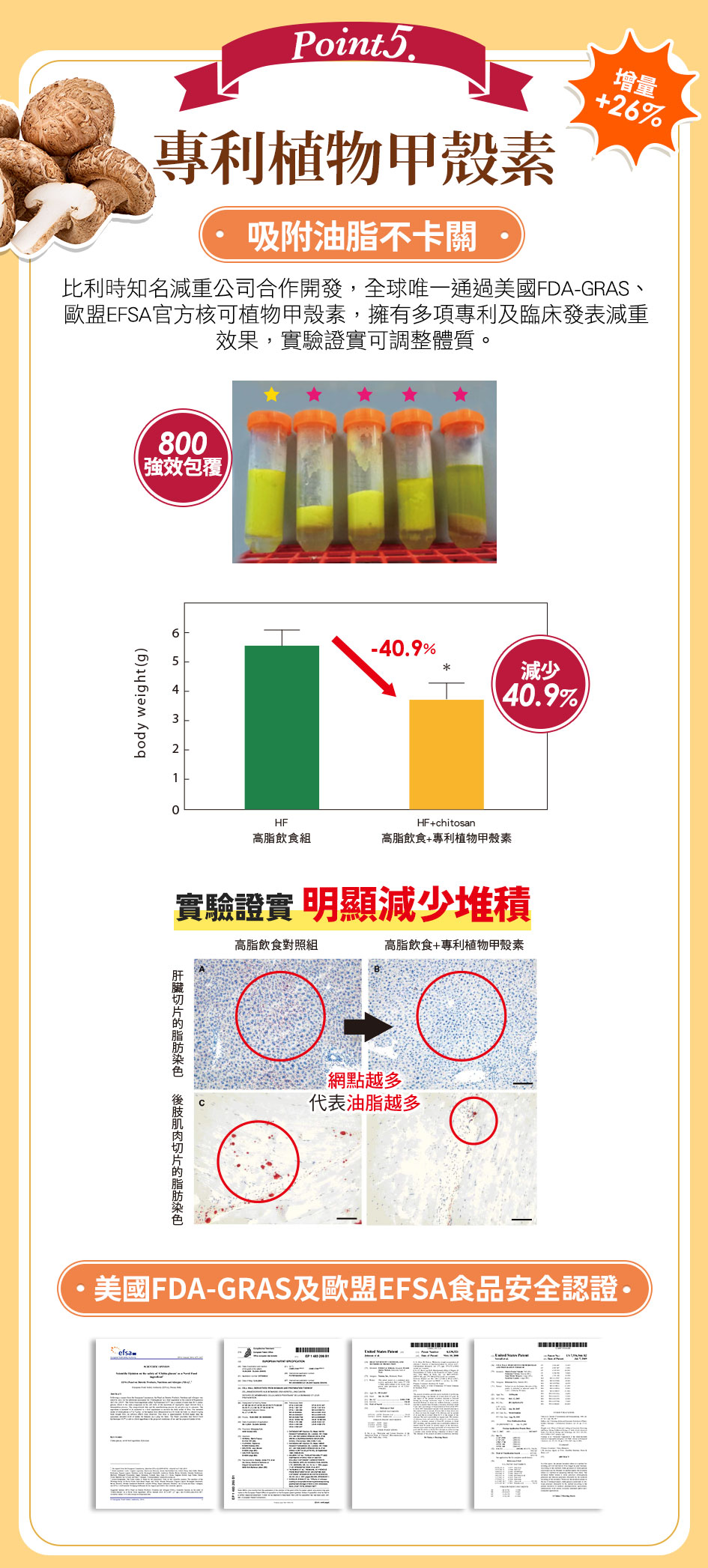 •專利植物型甲殼素 增量 26%:高效率油切有感,減少油膩感。