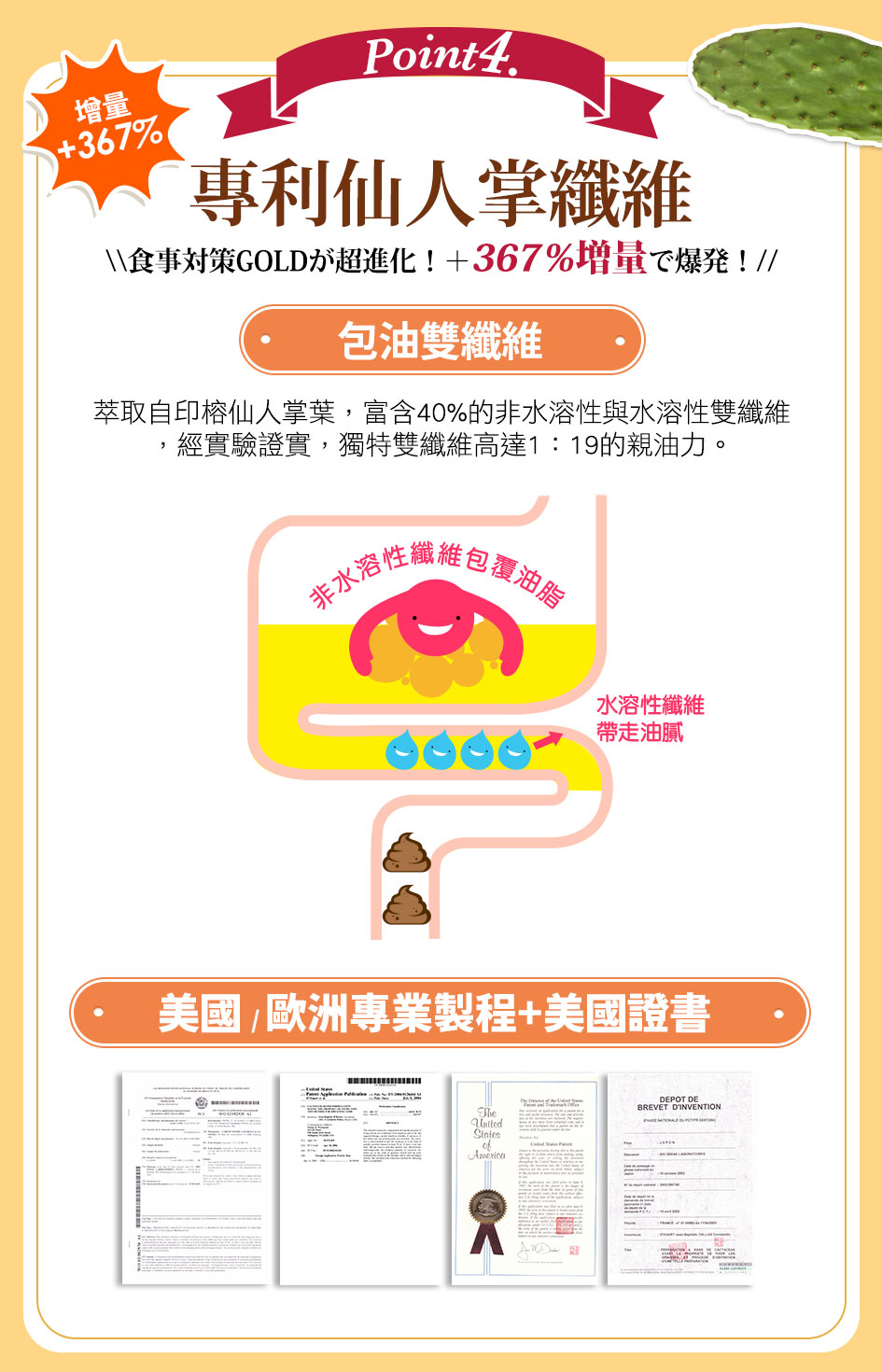 •專利仙人掌包油雙纖維 增量 367%:超強吸附力,狂掃油膩!